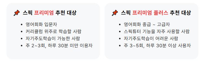 ++) 추가적으로 스픽에서 제공하는 프리미엄과 프리미엄 플러스 차이점입니다!