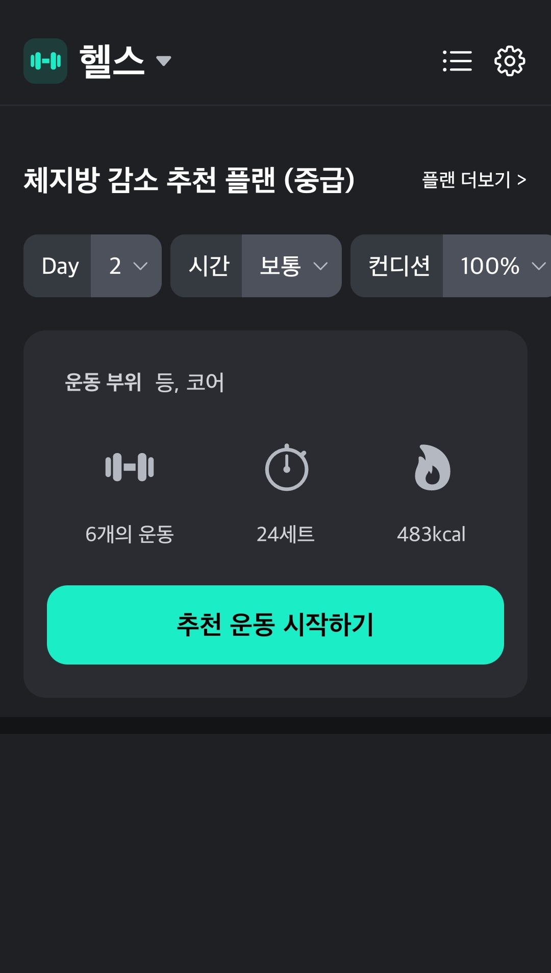 심지어 자극부위를 선택하고 유산소 운동도 추가해줍니다!