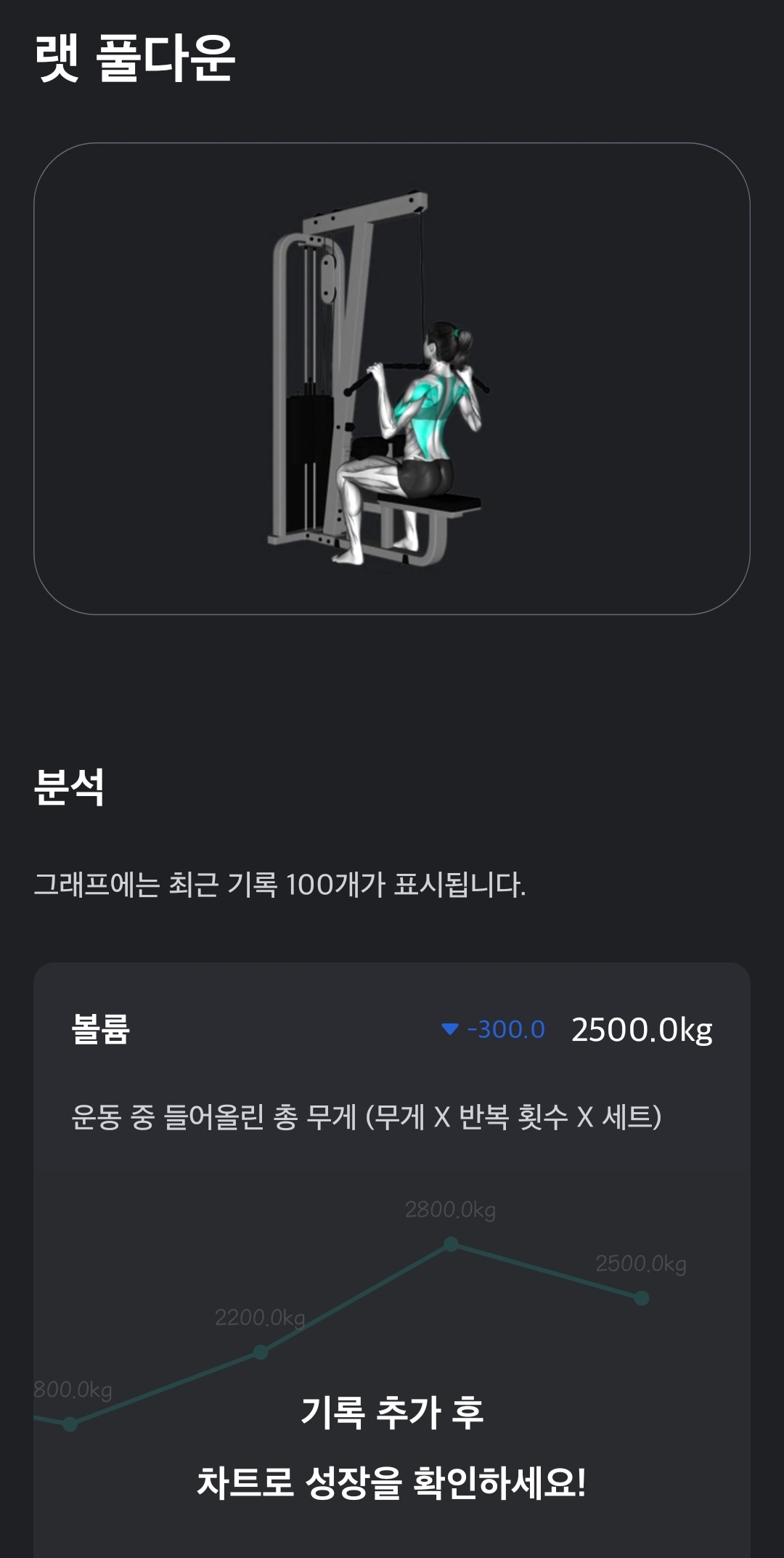세번째 사진처럼 각 운동의 무게를 기록하여 다음 운동시에 참고할 수 있습니다!